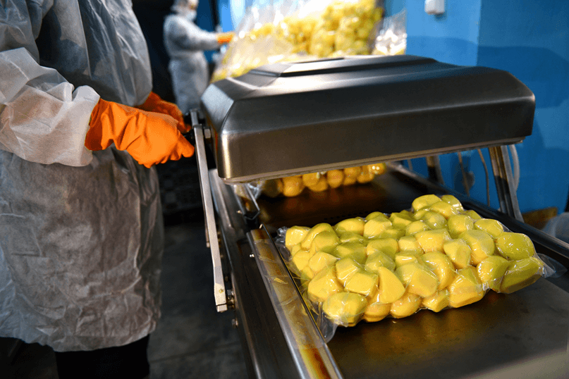 Процесс производства очищенных овощей в вакуумной упаковке