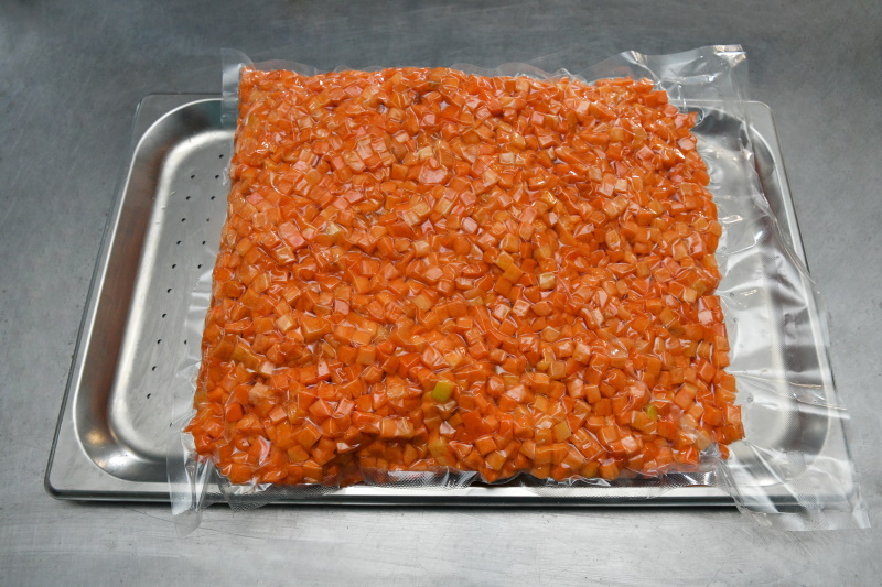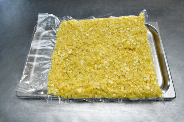 Вся продукция, производимая на предприятии, расфасовывается в специальную гигиеничную барьерную пленку под вакуумом. Замороженные овощи в вакуумной упаковке полностью сохраняют вкусовые качества и свежий внешний вид.